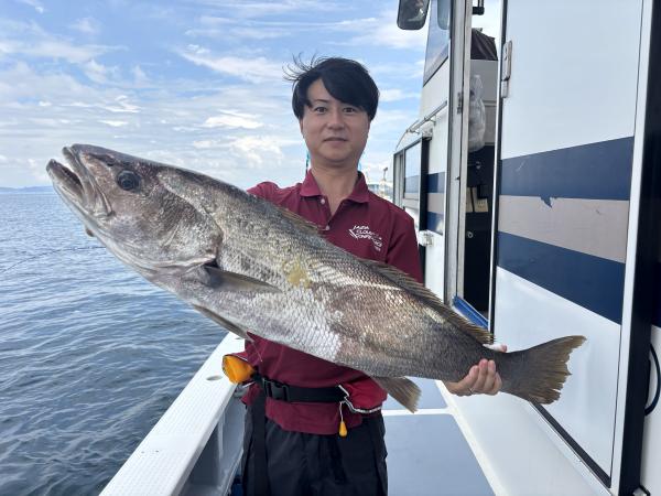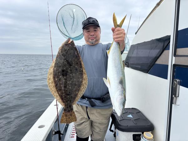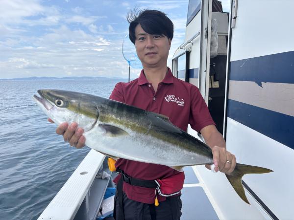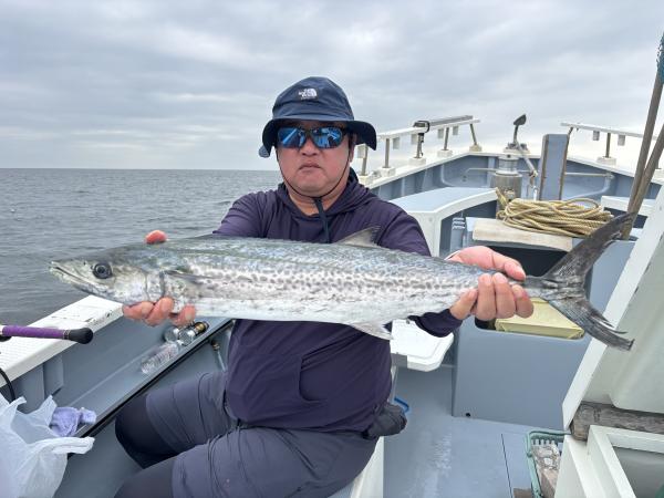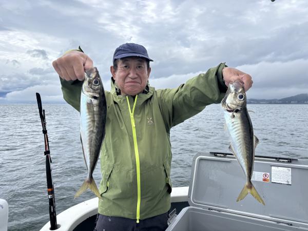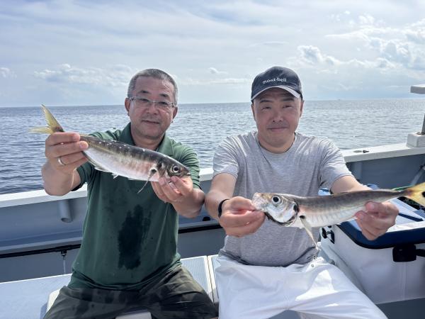 海上凪‼️今シーズン初の深場落とし込み&泳がせ船に行って来ました。ベイト反応少なく朝一サバ泳がせ用のサバ釣りからスタートお客様も少なかったので確保出来ました。落とし込みで付き悪く、泳がせで全員ヒットは有りましたがワラサのみ、反応はあるので、次回出たら頑張りましょう、明日、明後日はアジ専門船で出船確定‼️絶好調〜ですよ〜‼️当日予約無しでも大丈夫朝5時前までにお越し下さい。貸し竿の方は要予約