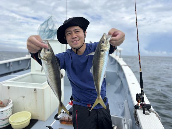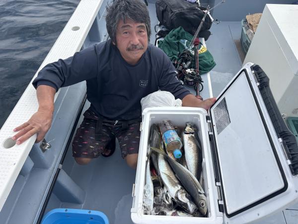 海上ベタ凪‼️本日はLT落とし込み&泳がせ船でガラガラ出船‼️朝一豆アジ釣りからスタートしたものの掛からず、落とし込みで午前中は上手く当たるとベイトが掛かりゲスト多彩でヒット‼️バラシ多発‼️何かしら全員ヒットしました。明日はアジ専門船で出船ガラガラですよ〜‼️当日予約無しでも大丈夫です。朝4時45分ぐらいまでにはお越しください。明後日は予報が…最新の情報で判断します、明後日月曜日はLT落とし込み&泳がせ船で出船確定‼️こちらもガラガラですよ〜予約受付中‼️9月16日から26日まで長期お休み致します。休み明けからの釣り物アジ専門船又はLT落とし込み&泳がせ船又は深場落とし込み&泳がせ船(ぶり、ワラサ)予約受付中‼️