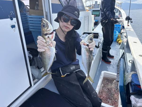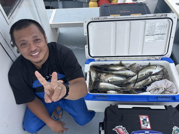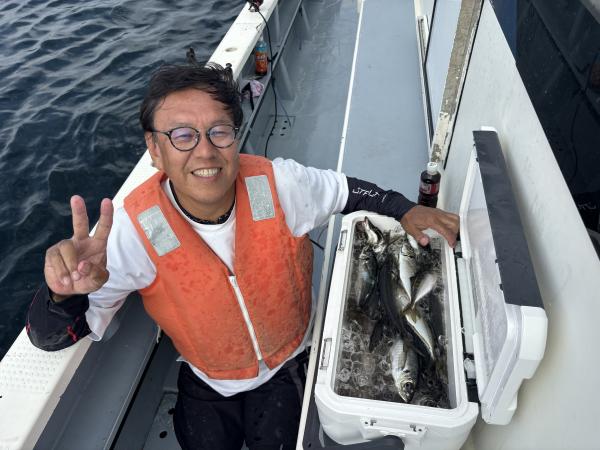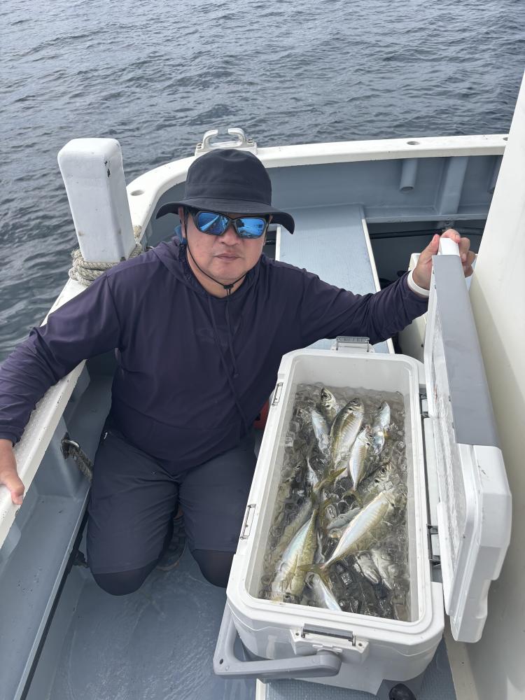 本日もアジ専門船で出船ガラガラでした。海上ベタ凪雨も大した事なく、アジは朝から絶好調‼️チュッパアジ主体でお土産バッチリ後半デカアジ狙いこちらはエサがきかないせいか食い今一つでしたがゲット出来ました。今後も期待かな?本日のスソはクーラーの中に入れた数です。残りはキャッチ&リリー。明日もアジ専門船で出船確定‼️やはりガラガラですよ〜、当日予約無しでも大丈夫‼️朝5時前までにはご来店ください。貸し竿の方は要予約‼️そろそろLT落とし込み&泳がせ船は終盤です。